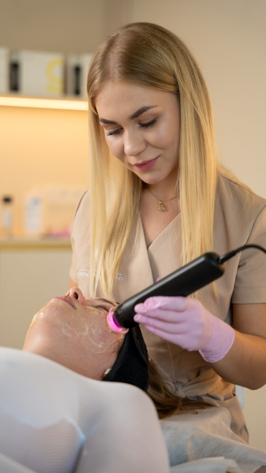 W zależności od potrzeb wykorzystujemy różne techniki: peeling kawitacyjny, sonoforezę, maski terapeutyczne, kwasy, serum lub masaże.